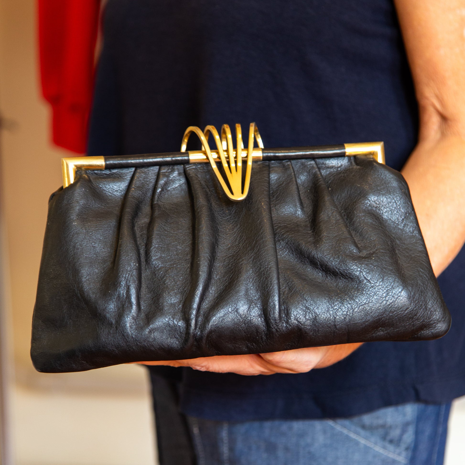 Carteira em couro com fecho em metal dourado