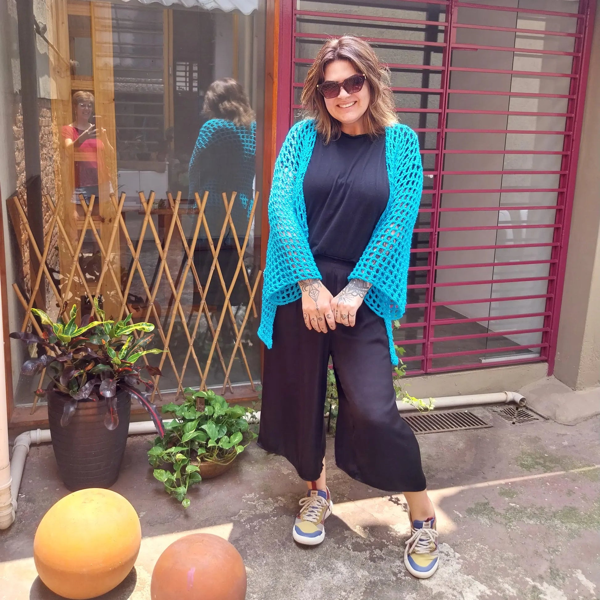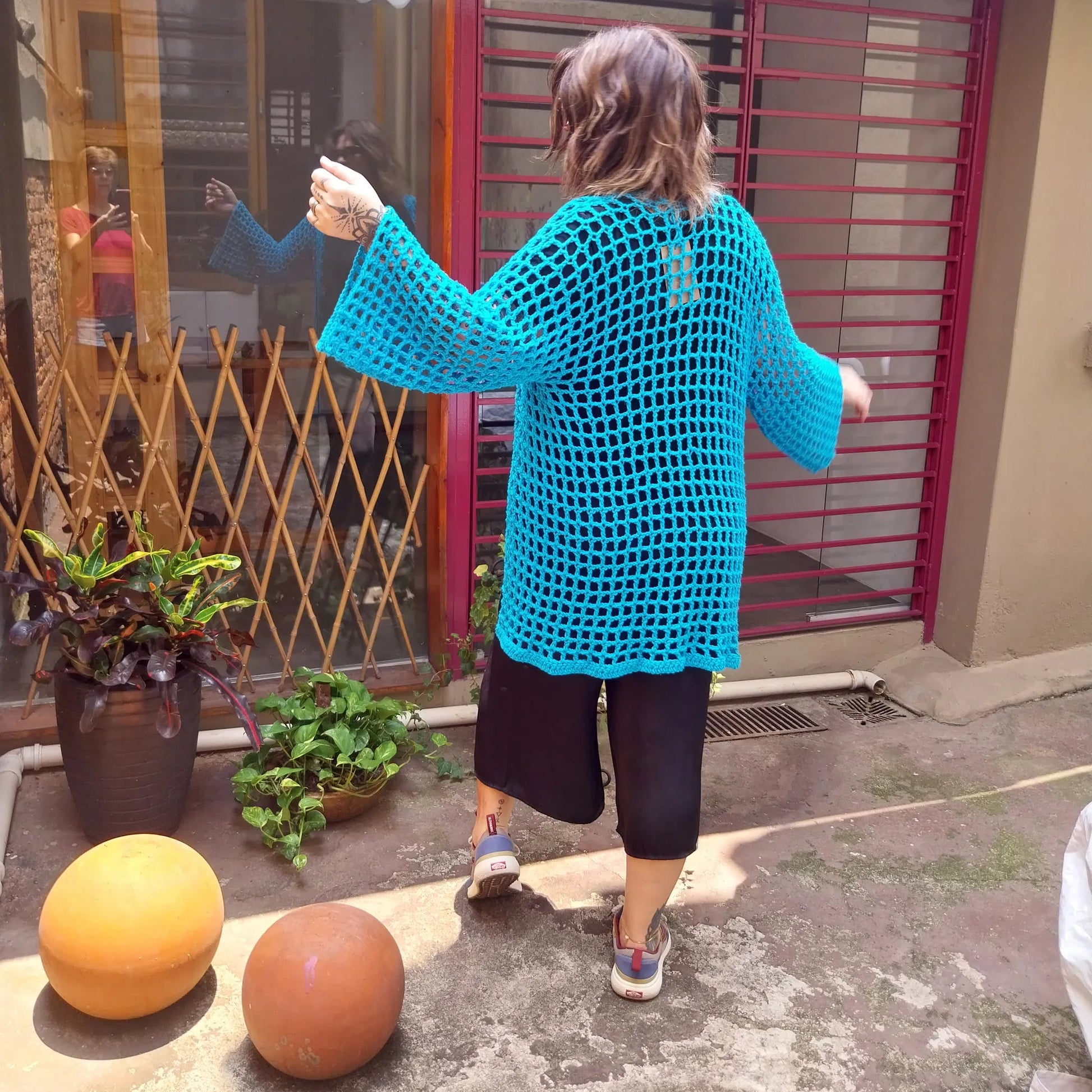 Kimono feito à mão em crochê com fios 100% algodão