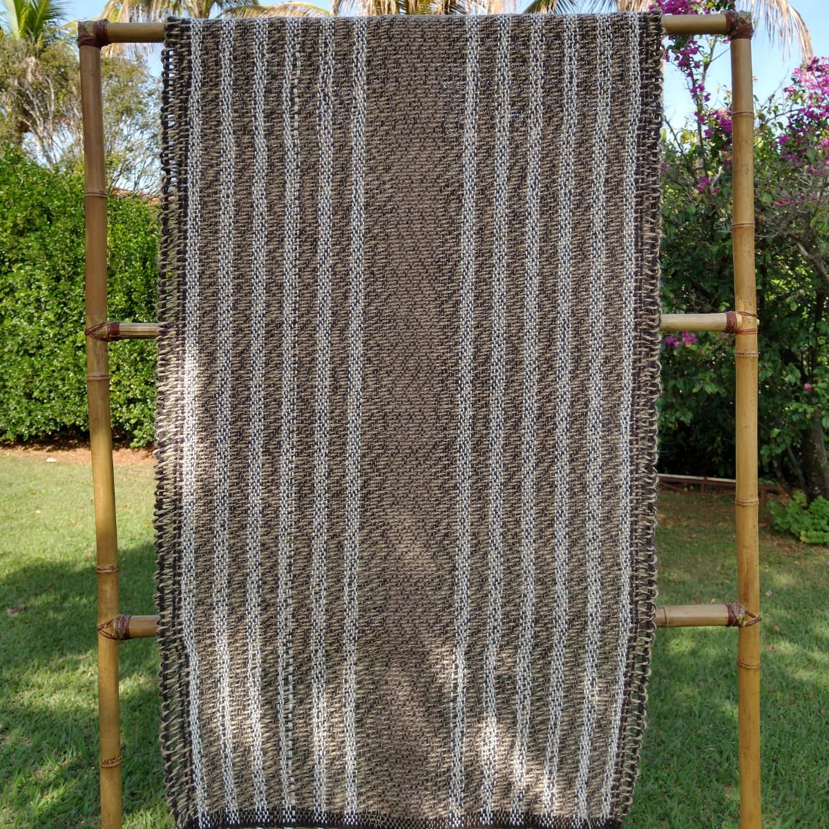 Trilho de mesa tramado no tear manaul em 100% juta.