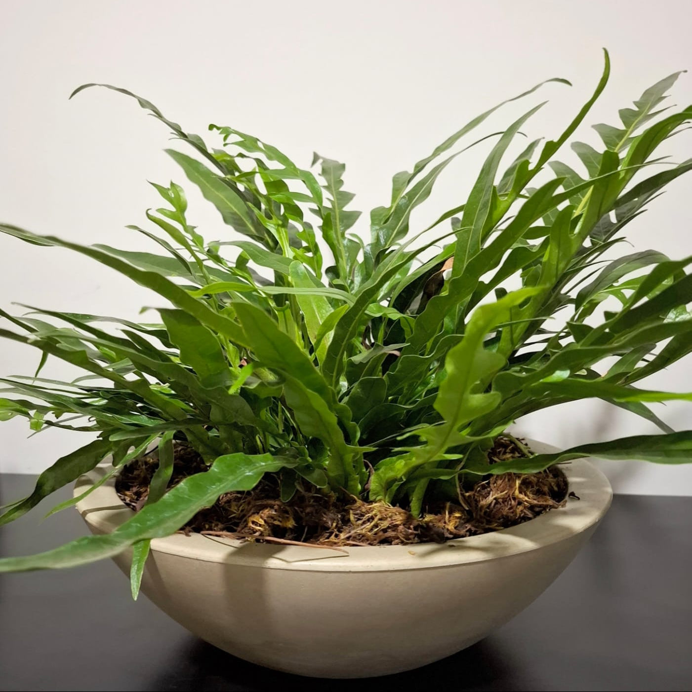 Vaso bacia em plástico reciclado na cor bege com Samambaia Jin Hara,